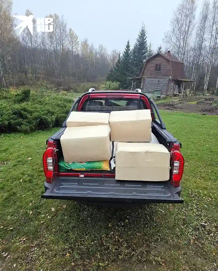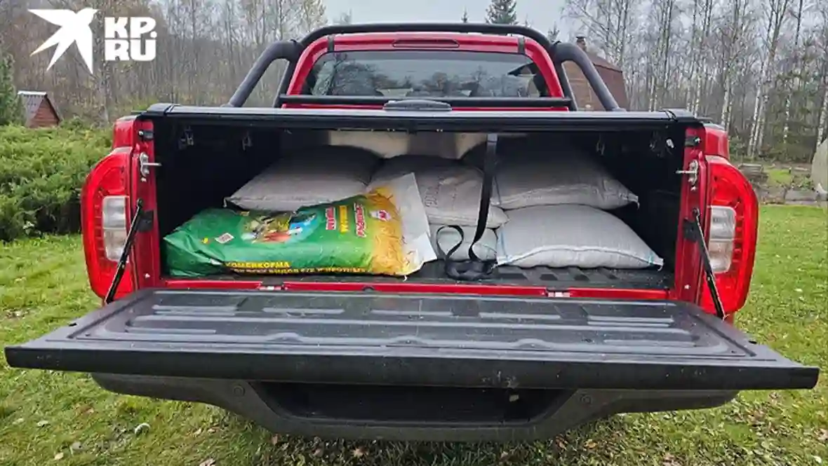 Планы были большие. Оценив габариты TUNLAND G7, мама уверенно составила список – 12 мешков разного зерна, столько же – тюков соломы, плюс 8 прессованных блоков опилок. Реальность нас слегка отрезвила. Влезло ровно половина от этого! И то – часть соломы пришлось пихать на задний ряд в салон. На самом деле, влезло бы больше, но мы не захватили тросы, чтобы крепить поклажу – дабы не вывалилась из кузова на крутом повороте или какой-нибудь яме. Так-то на бортах есть такелажные крюки – как раз на данный случай.