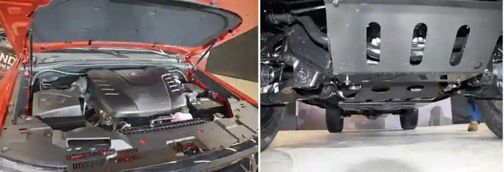 Под огромной крышкой – скромный 4-цилиндровый турбодизель. Защита прикрывает не только двигатель, но и коробку с раздаткой.